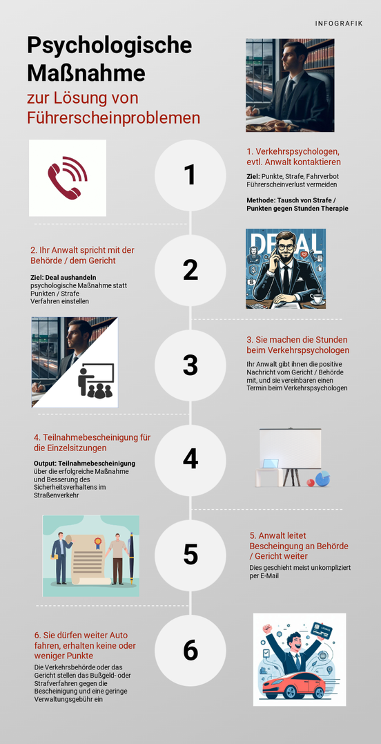 Zeigen sie sich besonders positiv motiviert und auch fähig, kann in Berlin mit einem Fahreignungsseminar oder einer anderen verkehrspsychologische Maßnahme und etwas Geschick eines Rechtsanwaltes sogar ein Strafverfahren gegen Auflage eingestellt werden. Im Idealfall kann in Berlin mit einem erweiterten Fahreignungsseminar sogar eine MPU vermieden werden. Ein Tausch von Punkten gegen verkehrspsychologische Beratung und Besserung des Fehlverhaltens ist aber meist immer drin. Hierzu müssen sie allerdings auch wirklich etwas an ihrem Verhalten ändern wollen. Dies können sie mit einem Fahreignungsseminar in Berlin direkt tun. Ihr Rechtsanwalt bekommt dann von uns eine kurze verkehrspsychologische Stellungnahme, sodass er mit der Ordnungs- oder Strafverfolgungsbehörde einen Deal aushandeln kann (verkehrspsychologische Einzelsitzungen im Tausch gegen Punkte oder Strafe).